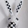 Trofeo in cartapesta rivestito con carta di Codice Civile con muso e orecchie a quadrati neri e bianco sporco.