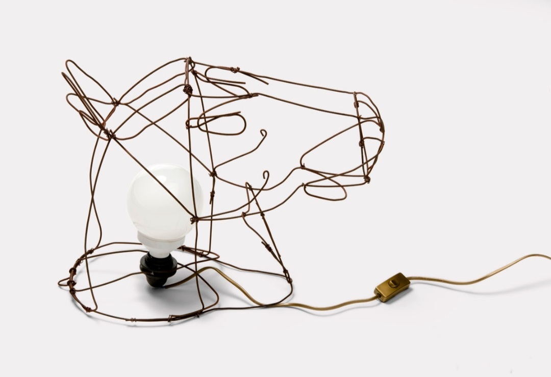 Cavallo lampada da tavolo, realizzato con filo di ferro dolce dal diametro di 3 millimetri.